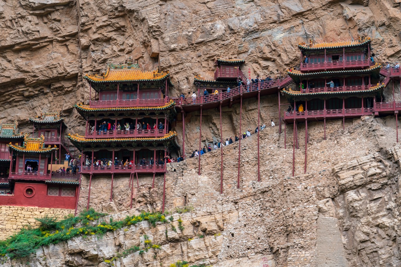 10:00-12:00 Visitaremos el Templo Colgante,un complejo de templos que fusiona el budismo,el taoísmo y el confucianismo. Explore sus salones tallados en la roca y admire la ingeniería ancestral que ha mantenido esta estructura en pie por más de 1,400 años. Desde las pasarelas,se obtiene una perspectiva única del cañón y se aprecia la audacia de los antiguos constructores.