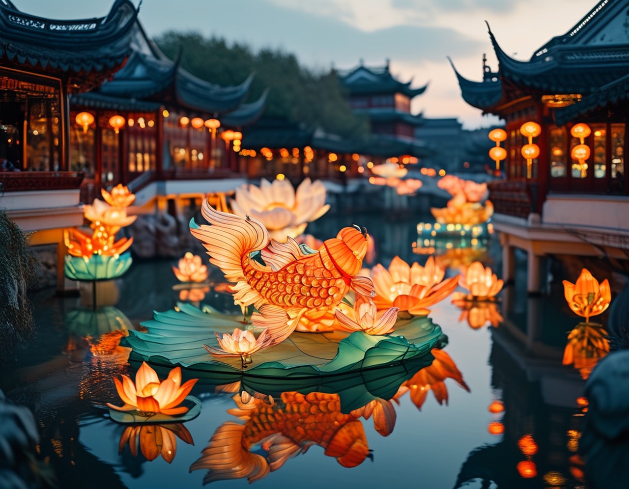 Ambiente y arquitectura: El lugar reproduce el esplendor de la dinastía Tang con sus edificios de estilo tradicional, brillantes faroles rojos y esculturas temáticas.